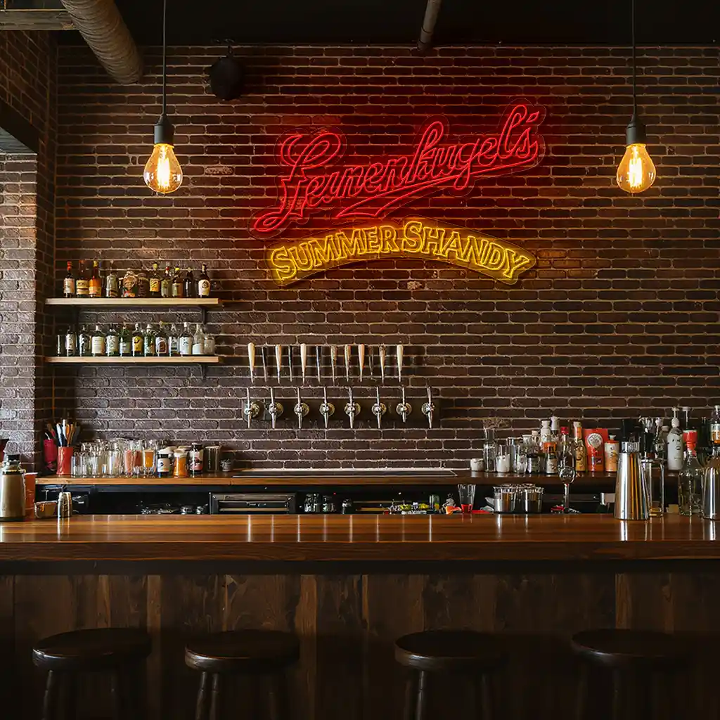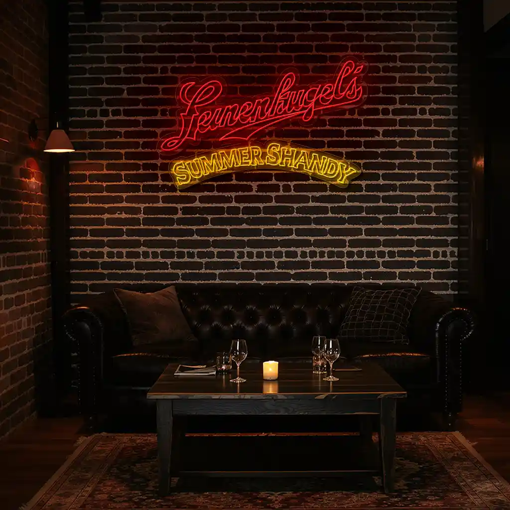 • Dynamic Color Coordination: The neon sign showcases a harmonious blend of vivid yellows and crisp whites that mimic the refreshing lemon-lime flavor profile of Summer Shandy. These colors not only brighten any room but also create a lively, welcoming ambiance.