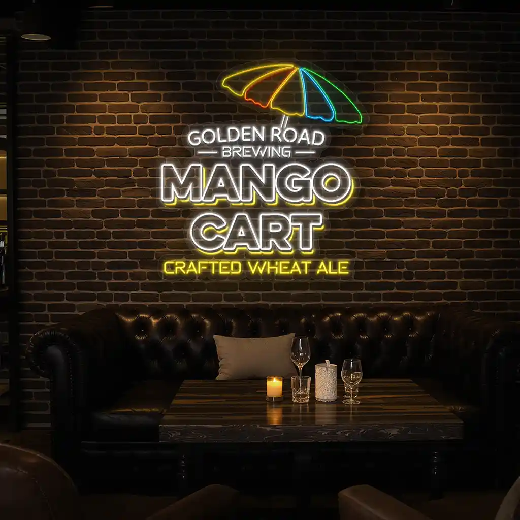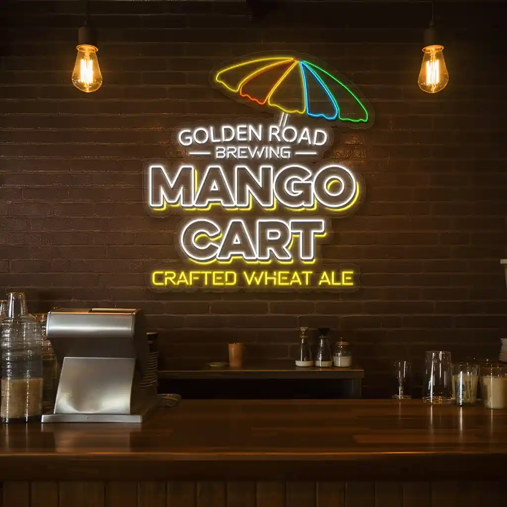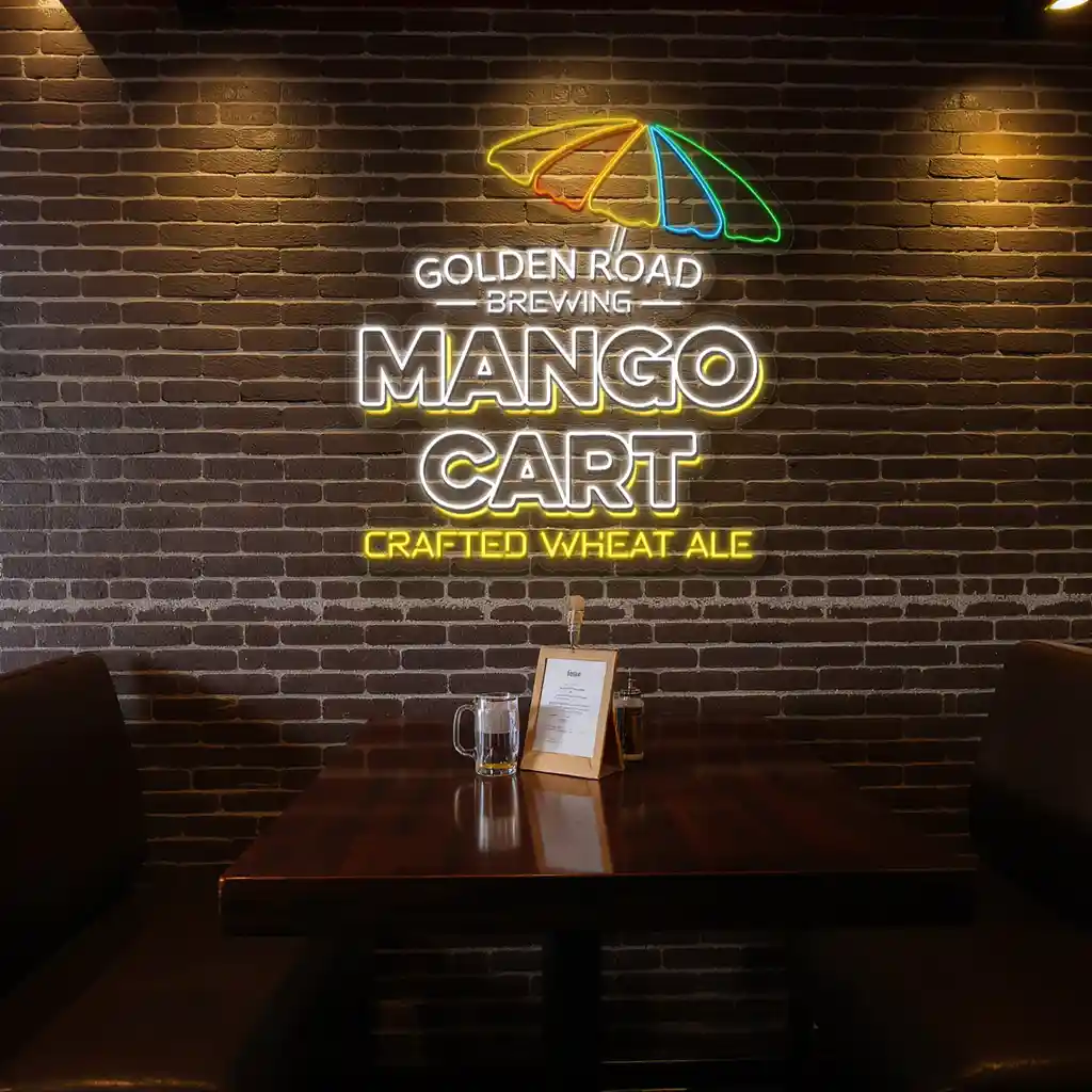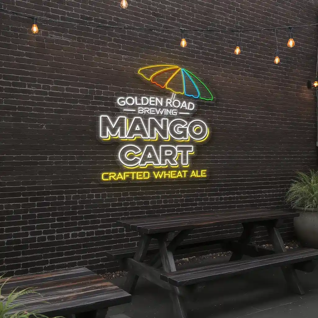 Vibrant Neon Signs: Golden Road Brewing Mango Cart Design