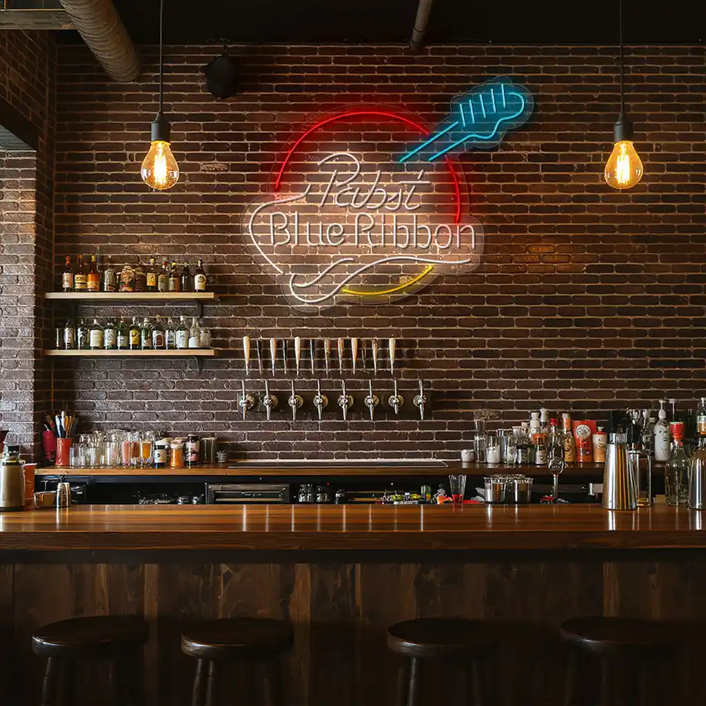 Retro Neon Sign Design: Vibrant Pabst Blue Ribbon Style