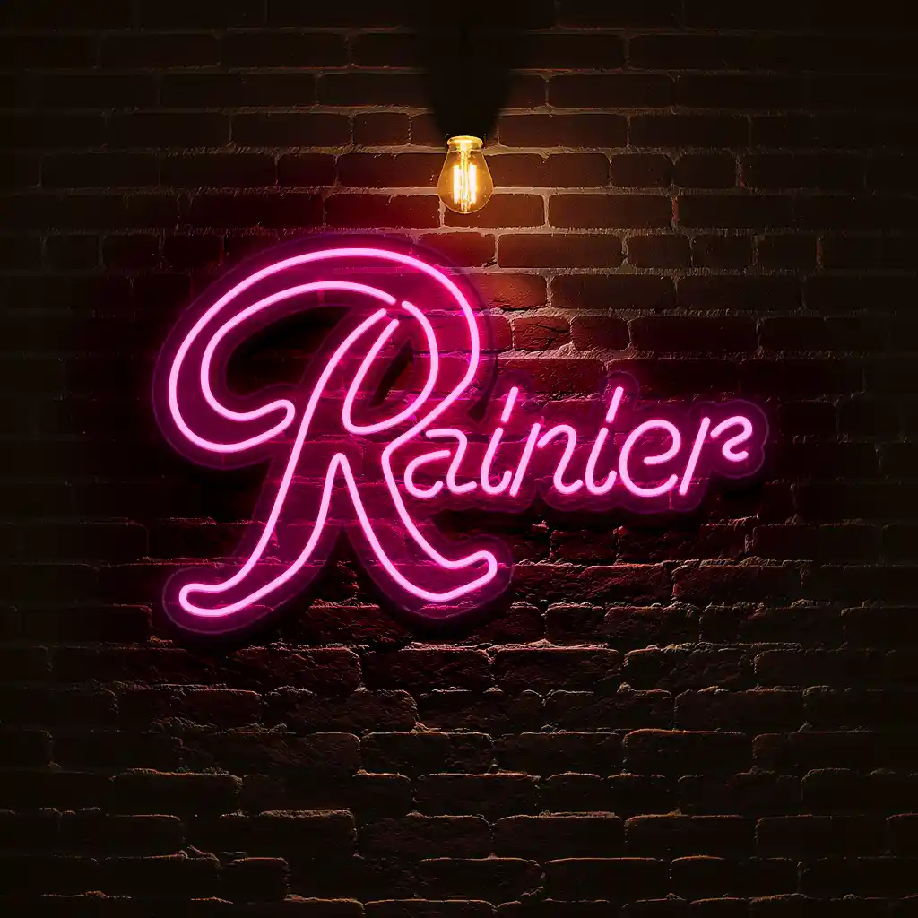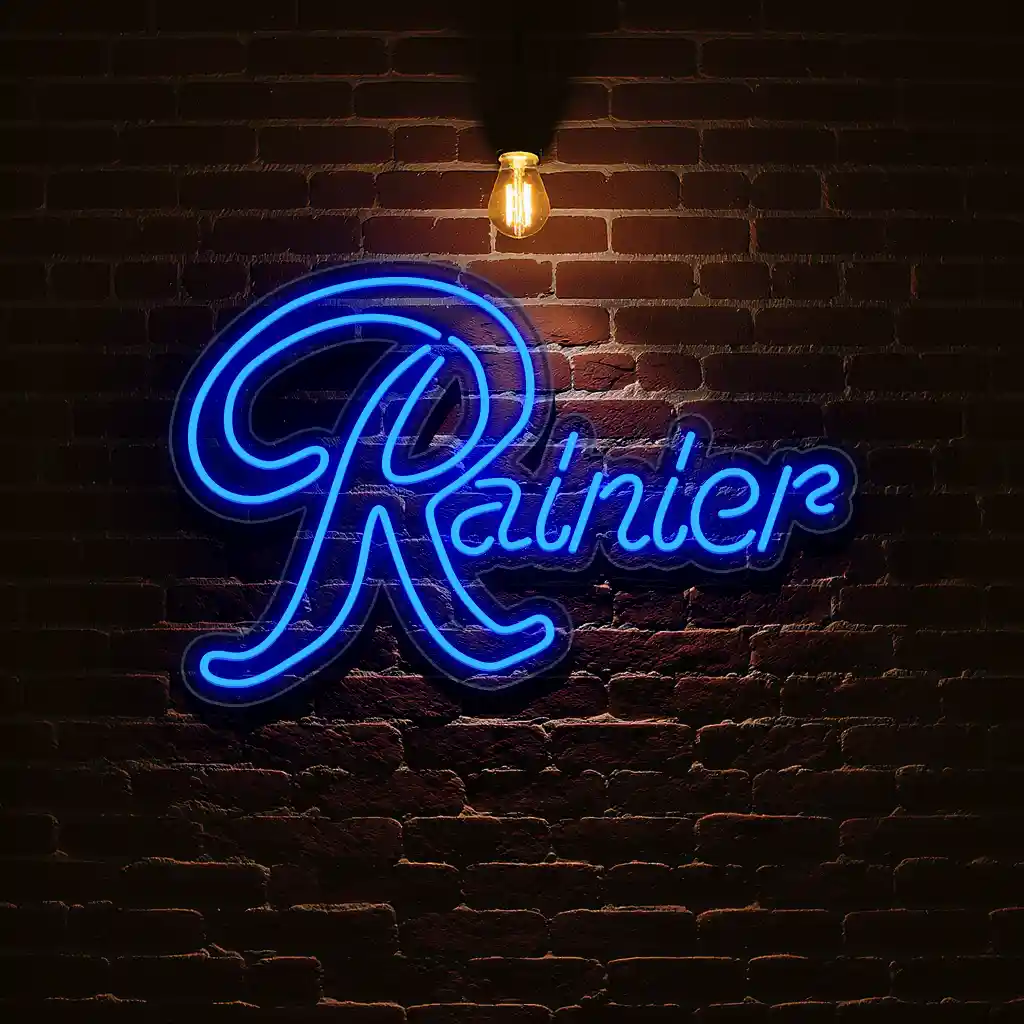 Neon Sign Design: Vintage Rainier Beer Logo on Brick Wall