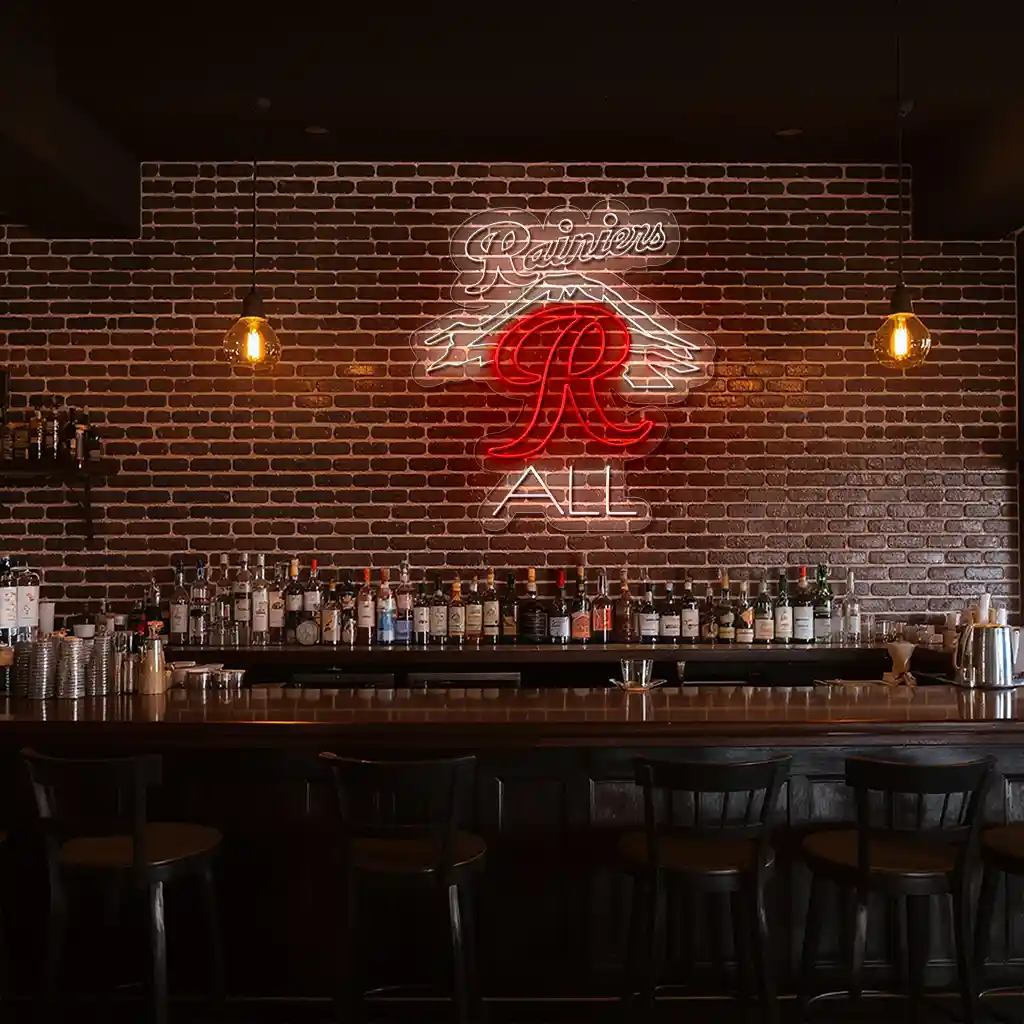 Vibrant Neon Sign Design: Rainiers ‘R’ LED Wall Art Decor